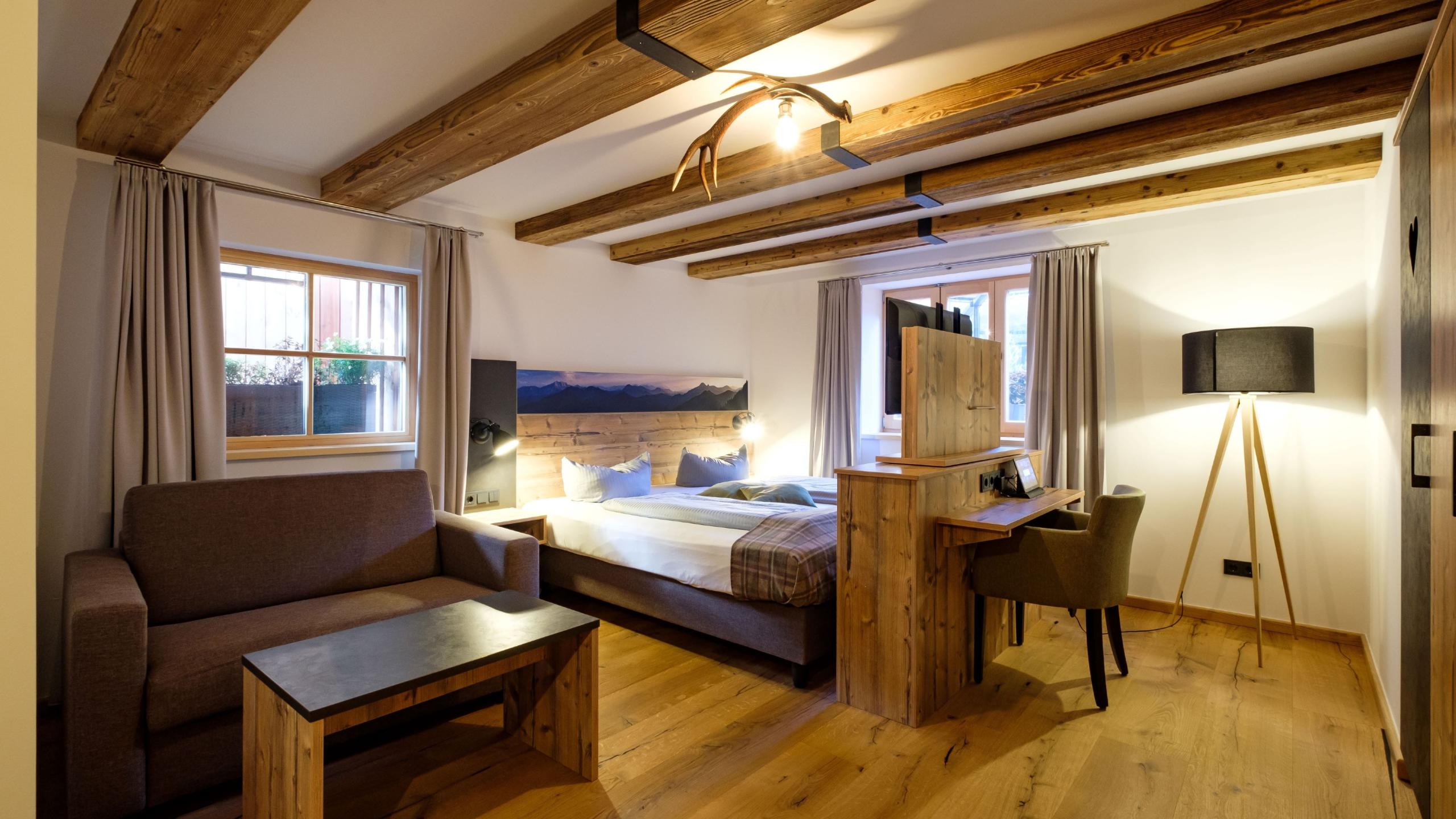 Ausstattung: Boxspringbett, Schreibtisch, Fußbodenheizung, Eichenholzboden, Erlebnisdusche/WC, Flachbildschirm, Digitale Gästemappe, Zimmersafe